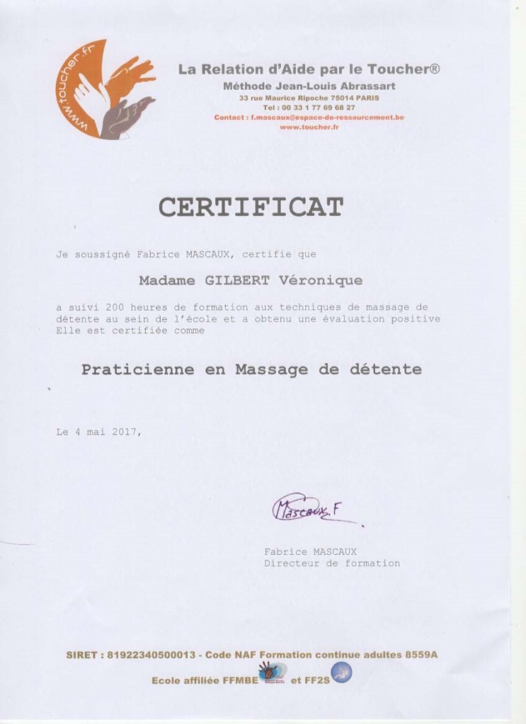 Praticienne formée depuis 2017 à la méthode de Jean-Louis ABRASSART – La Relation d’Aide par le Toucher®